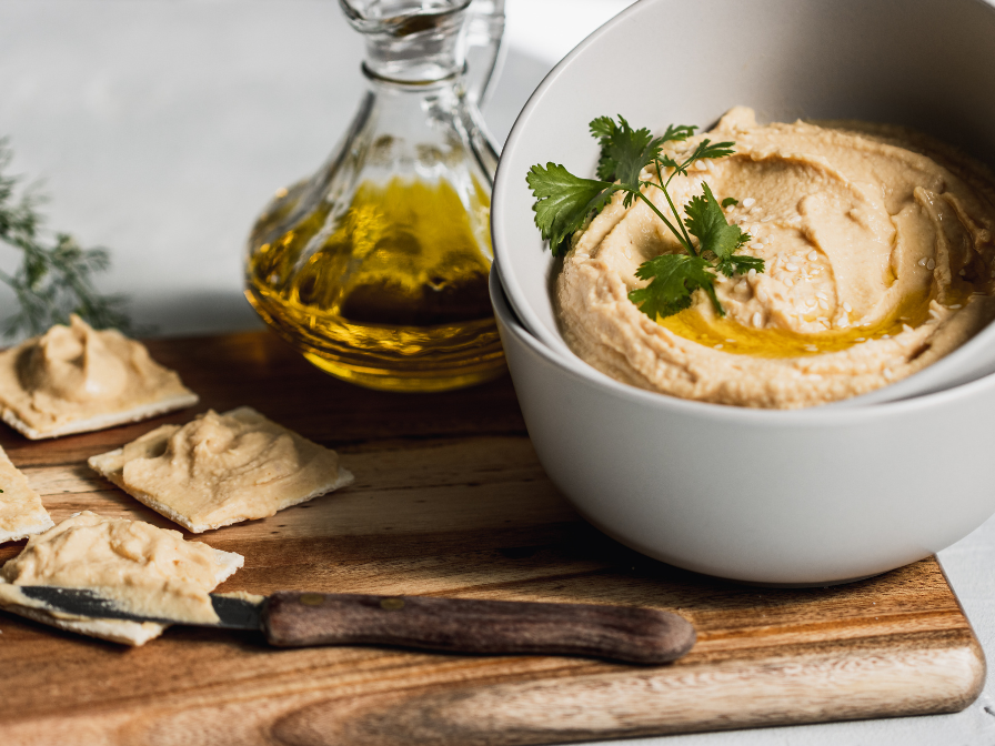 Хумус – це кремова паста з нуту та кунжутної пасти, яку їдять з хлібом або овочами.
